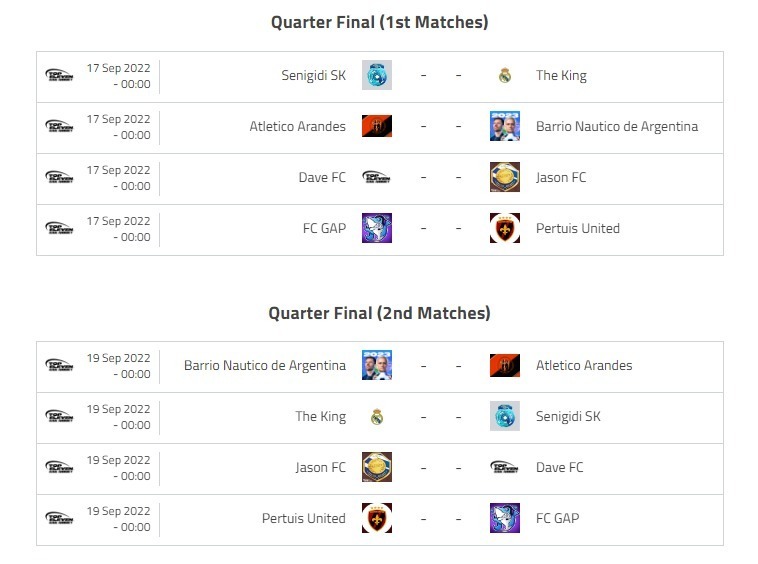GLOBAL COMMUNITY CUP QUARTER-FINAL MATCHINGS