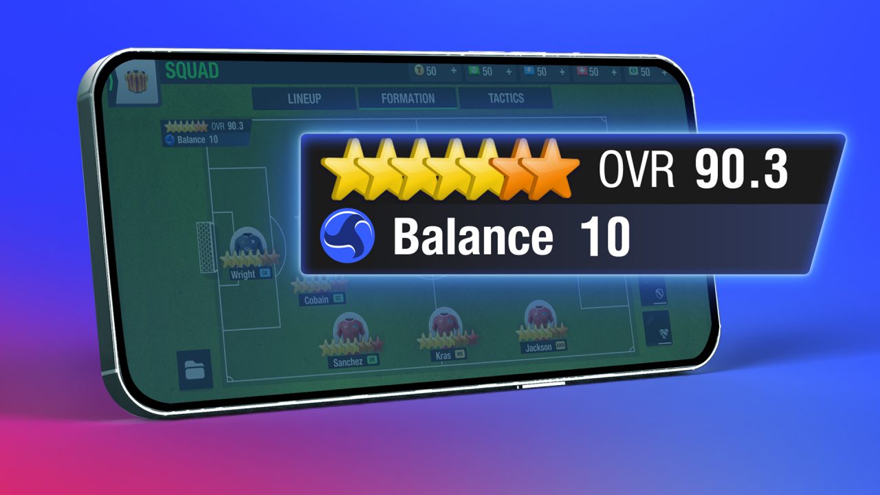 The Lineup Balance score impacts your team’s ball possession on the pitch – the higher the Lineup Balance the better chances of ball control in the match. With 10 being the highest score, your team’s Lineup Balance can depend on various factors such as formation, red cards, injuries, and positioning players according to their roles.